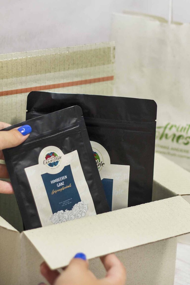 Es gibt Verpackungen, welche die gefriergetrockneten Früchte perfekt schützen und deren positiven Eigenschaften bewahren. Für deinen Crunch.