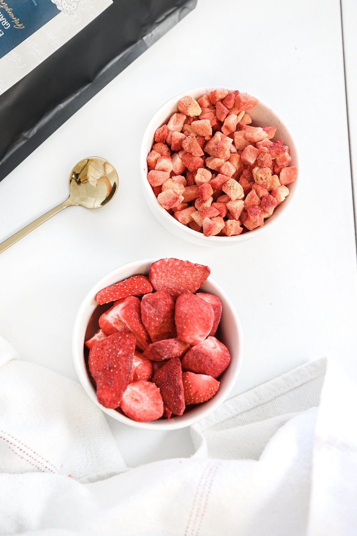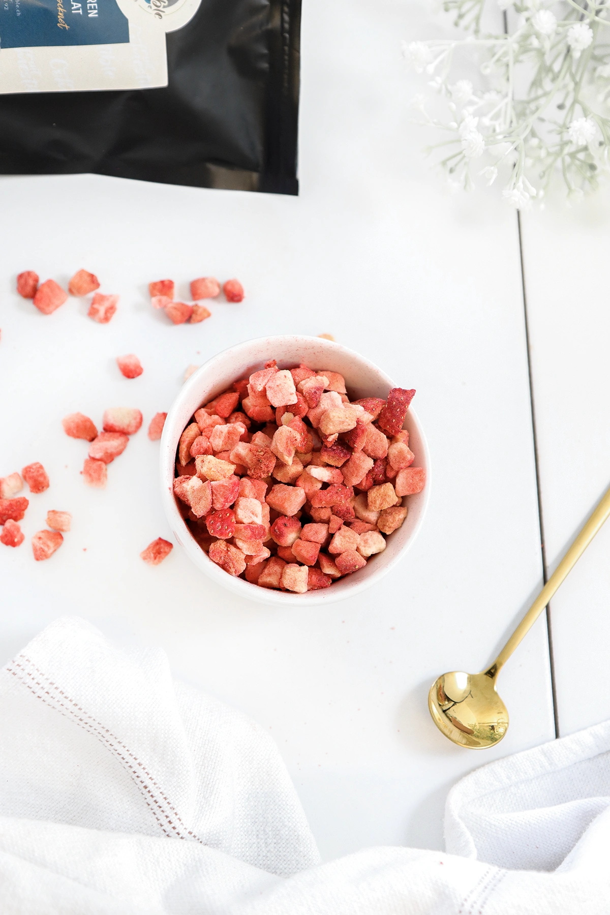 Gefriergetrocknetes Erdbeergranulat bietet die perfekte Kombination aus natürlicher Süße und Praktikabilität. Es ist ideal, um Textur und Geschmack zu einer Vielzahl von Gerichten hinzuzufügen.