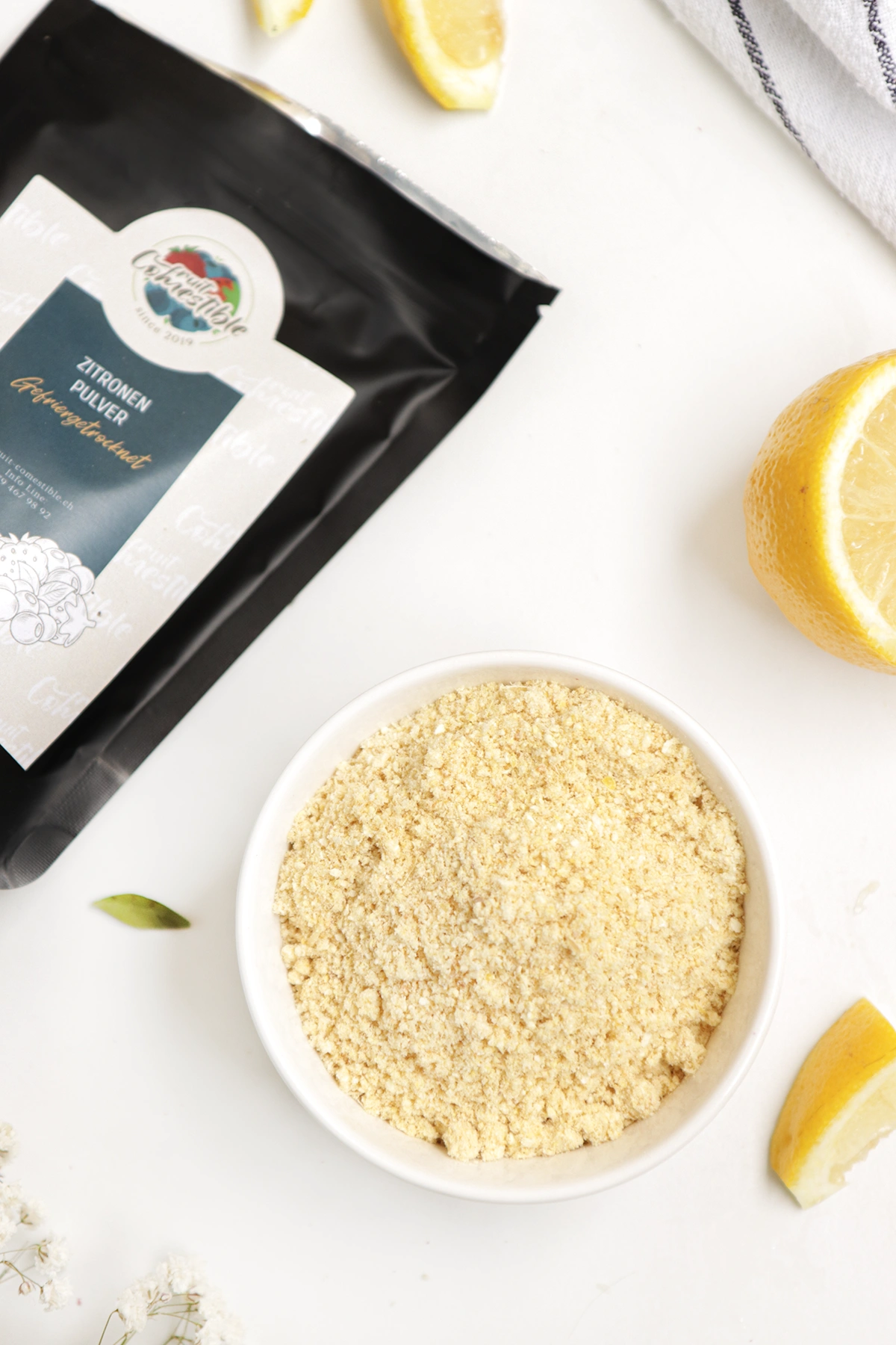 Gefriergetrocknete Zitronen sind sehr reich an Mikronähstoffen und sind der ideale Begleiter, wenn man griffbereit geniessen und sich etwas Gutes für sein Wohlbefinden tun möchte. Ideal auch für das Backen oder allgemein, um Speisen zu erfrischen und komplexer zu machen.